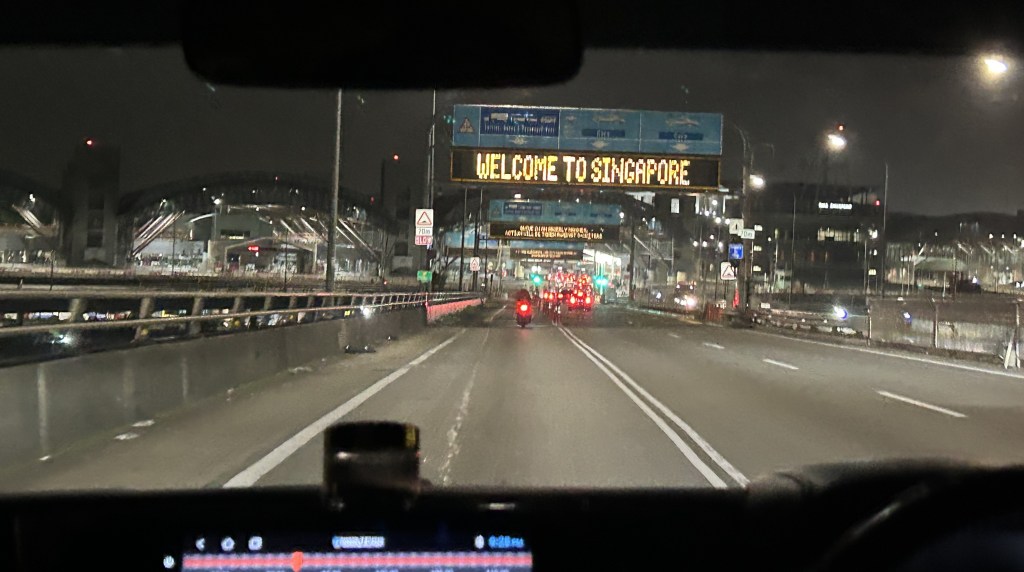 This photo taken on the 26th October at 9:28 PM (GMT+8), while passing over the Second Link Bridge toward the Tuas Checkpoint in a taxi that had picked me up in Iskandar Puteri, en route to my rented apartment in Jurong. This moment marked the final day of my 14th week in Singapore, with only a few days remaining before my scheduled return to Malta.